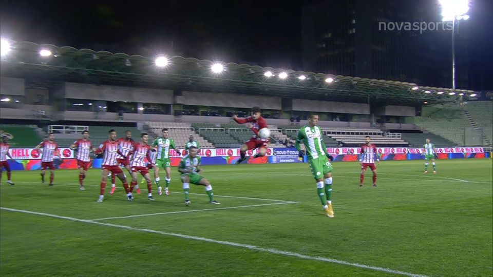 Γκολ ο ολυμπιακός με τον γκερέρο μετά από σέντρα του τσιμίκα.